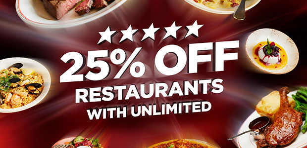 Starved of big-screen entertainment and the latest Unlimited deals? We’re here to remind you of your discount at our partner restaurants. Unfortunately, your Unlimited membership no longer includes discounts at YO! Sushi and Belgo. However, you still get 25% off your total bill with your Unlimited card at Bella Italia, Café Rouge and Las Iguanas.